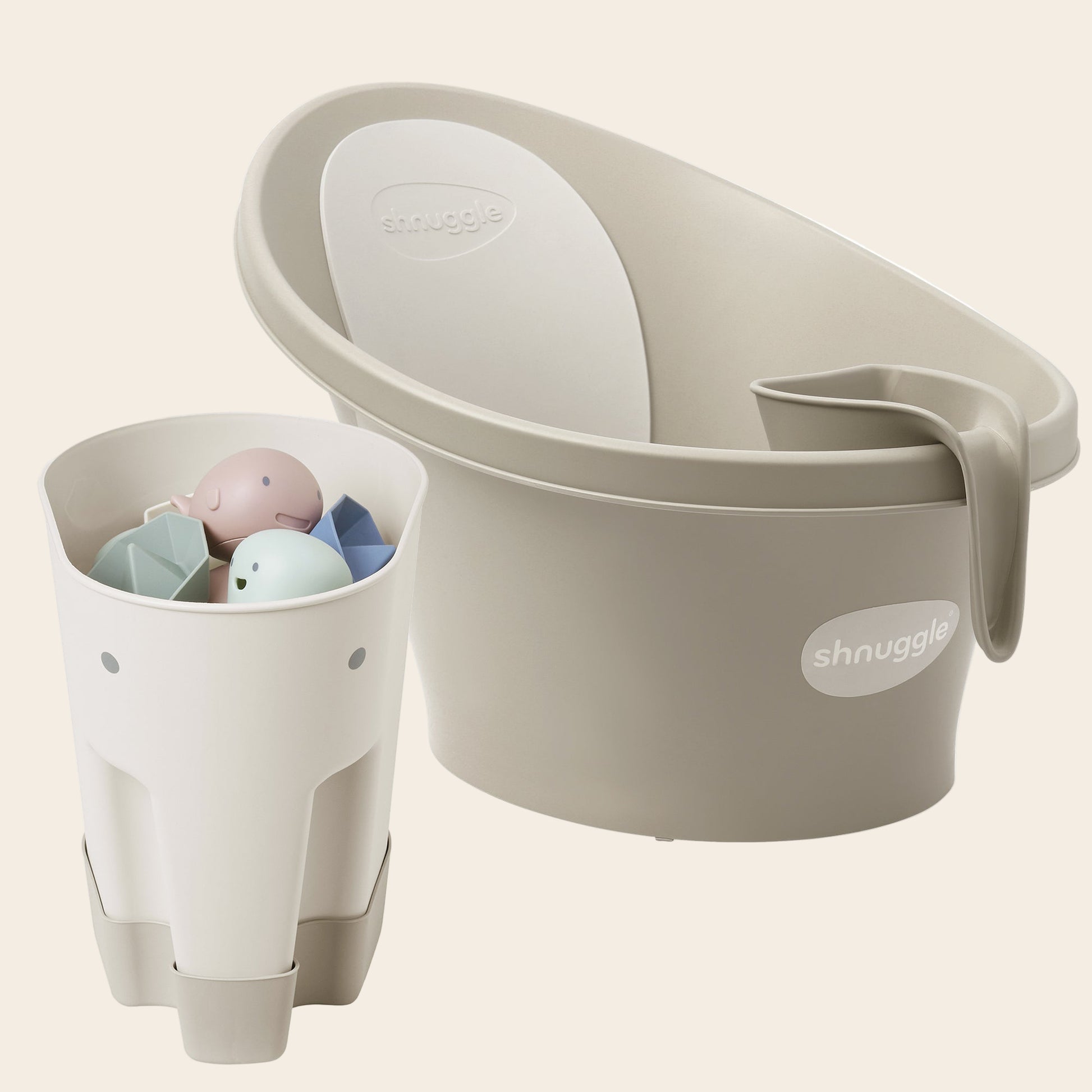 Enjoy a safe, cozy, and organized bathtime routine with the Shnuggle Baby Bathtime Essentials Bundle in Taupe. This set includes everything you need to make bathtime smooth and enjoyable, featuring the Shnuggle Baby Bath with support, Rinse Jug, and Ellie Bath Toy Scoop.