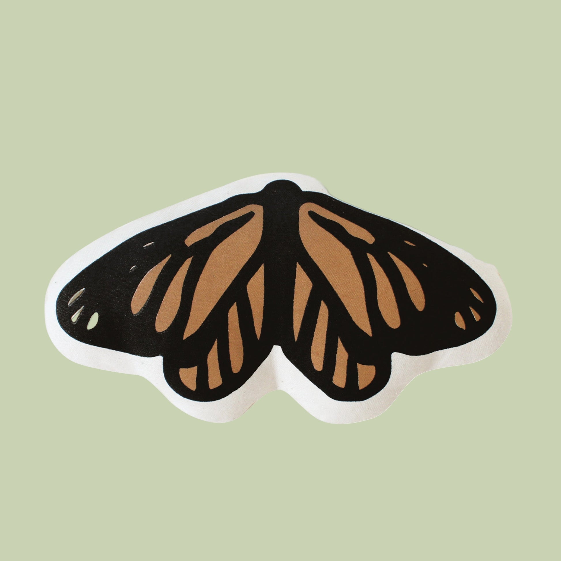The Butterfly Canvas Pillow is sewn and hand screen printed by local artisans on natural canvas, featuring a striking black and rust design. A part of our Flower Child Collection 2023, this pillow adds a whimsical and earthy touch to any living space.