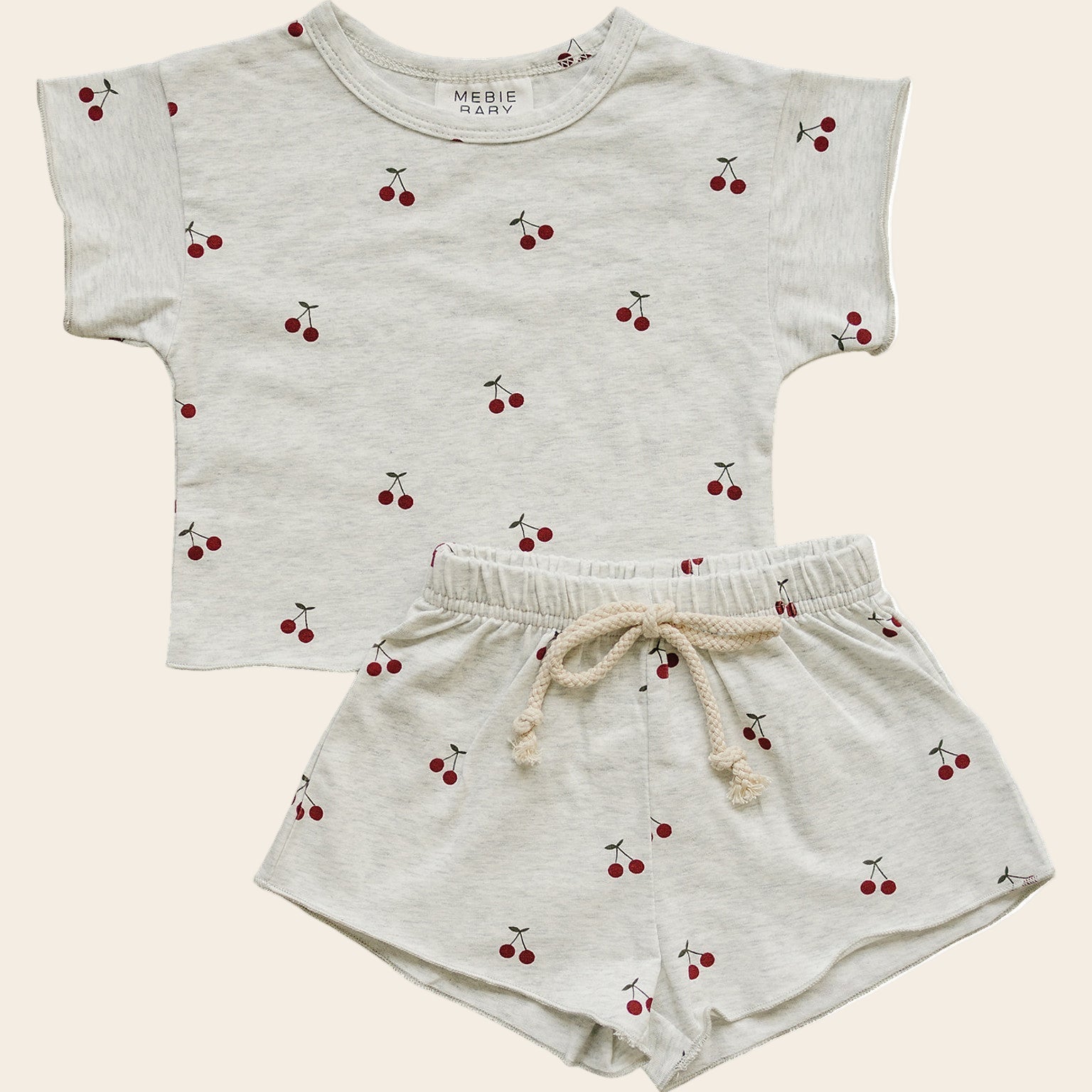 Add a pop of summer fun to your little one’s wardrobe with this Cherry Shorts Set. The set includes a cute cherry print on both the top and the shorts, with the added detail of raw hems for a trendy look. Crafted from soft cotton for ultimate comfort, this set is perfect for those warm weather days when your child wants to look cute and feel comfortable. Pair it with sneakers or sandals for a ready-to-go summer outfit.