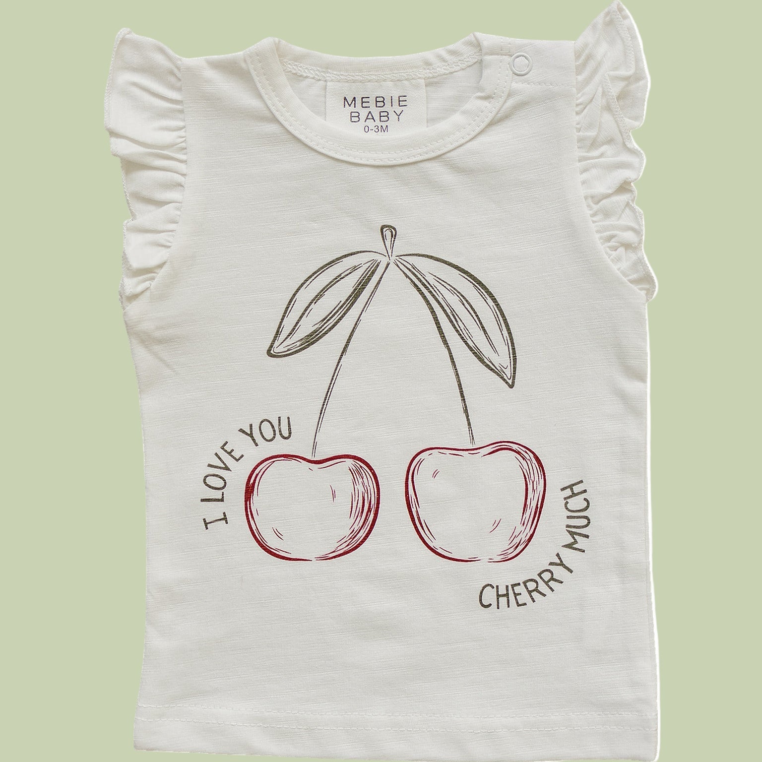 Brighten up your little one’s day with our Cherry Ruffle Tee! Featuring an eye-catching cherry print and delicate ruffled sleeves, this tee is a perfect combination of comfort and style. Made from soft, lightweight cotton and spandex, it's easy to dress up or down for any occasion. From casual afternoons to birthday parties, this tee will make your child feel as sweet as a cherry! There is a snap on the shoulder from sizes 0-3 to 6-12m.