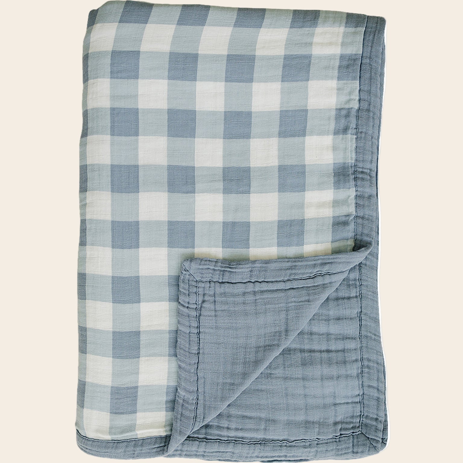 Introducing the Dusty Blue Gingham Twin Muslin Quilt, a stylish addition to our esteemed muslin quilt collection. This twin-size quilt features eight layers of soft, breathable muslin, offering the ideal blend of warmth and comfort all year long. The unique Dusty Blue Gingham pattern brings a modern touch to any bedroom decor. This quilt is not only lightweight and cozy but also easy to care for, becoming softer with each wash. Loved by parents and children alike, it’s the perfect choice for those seeking a blend of style, durability, and practicality.