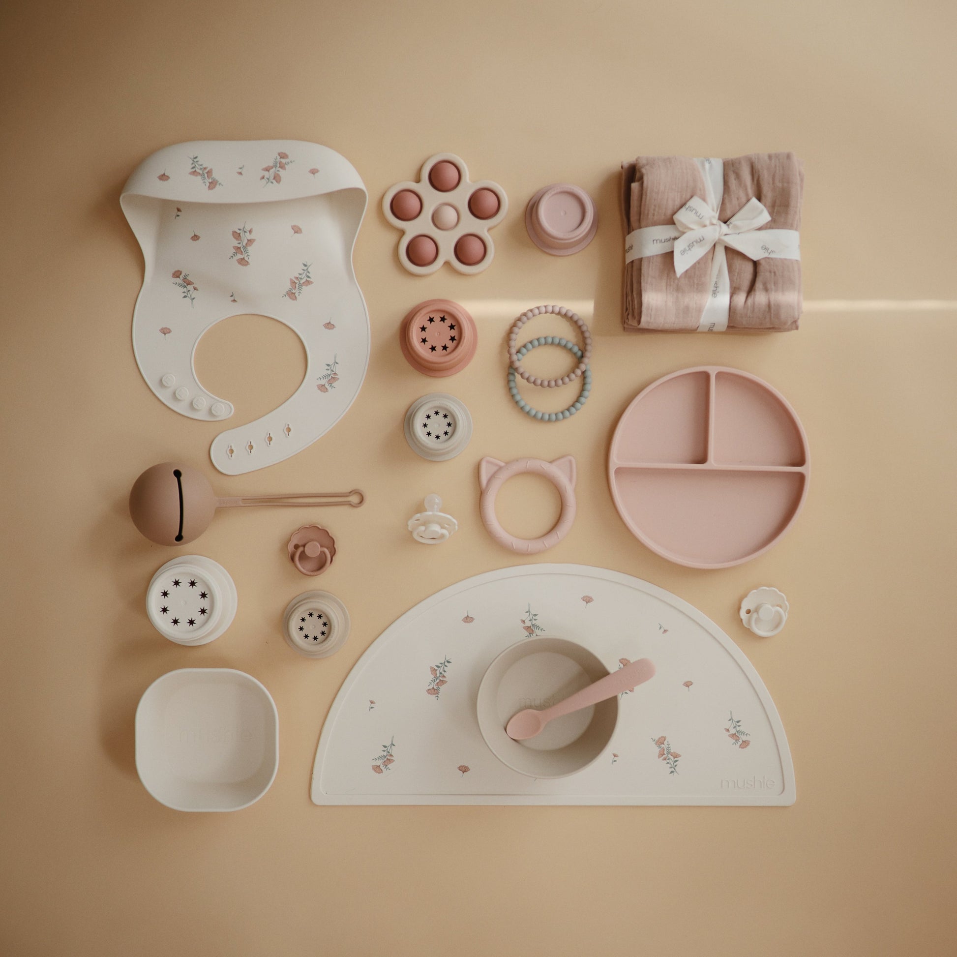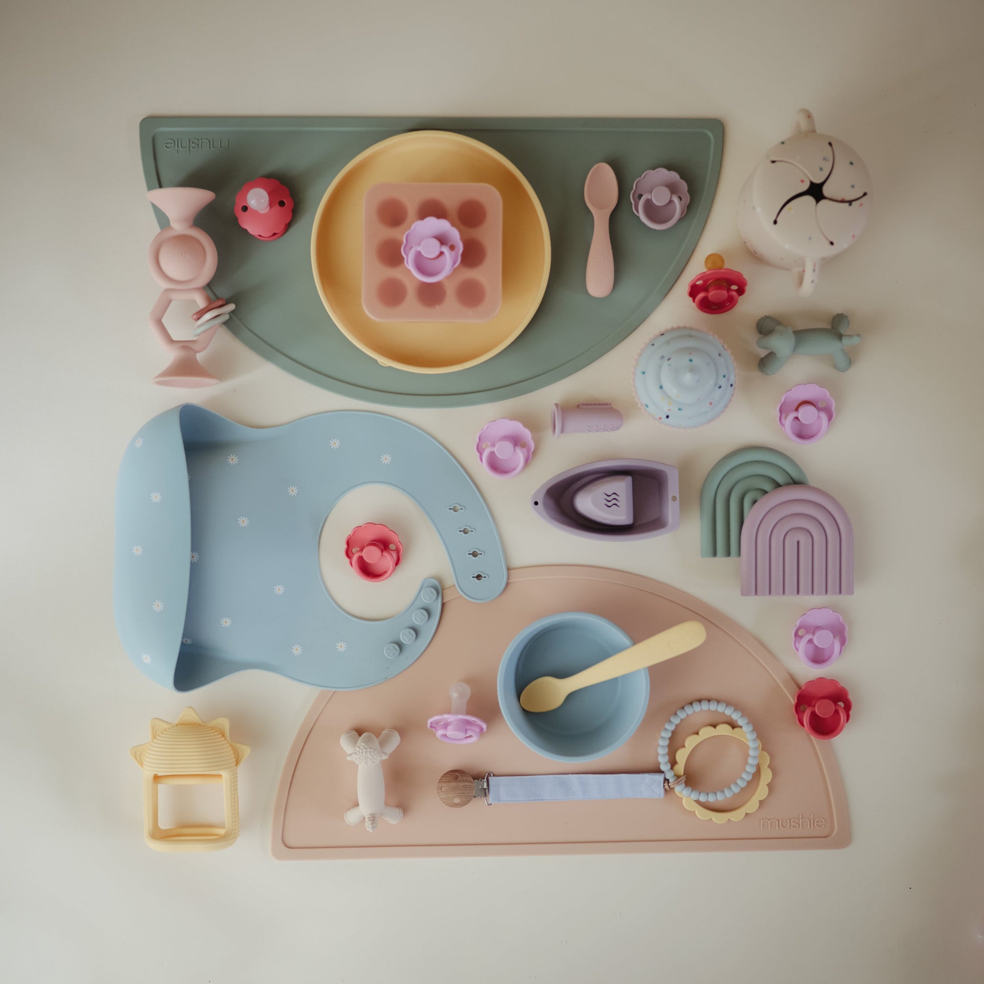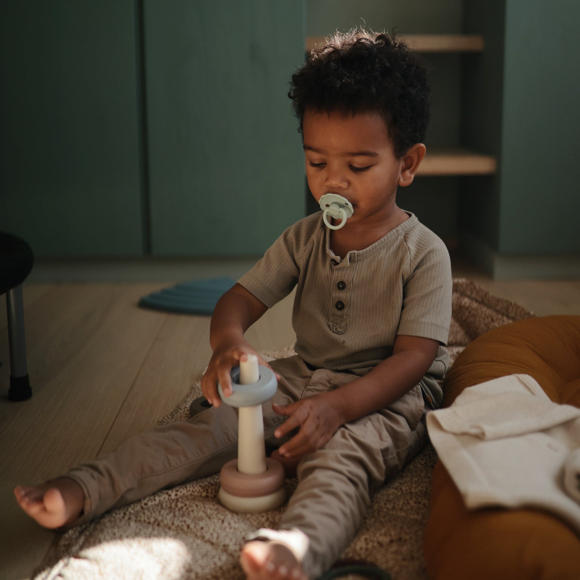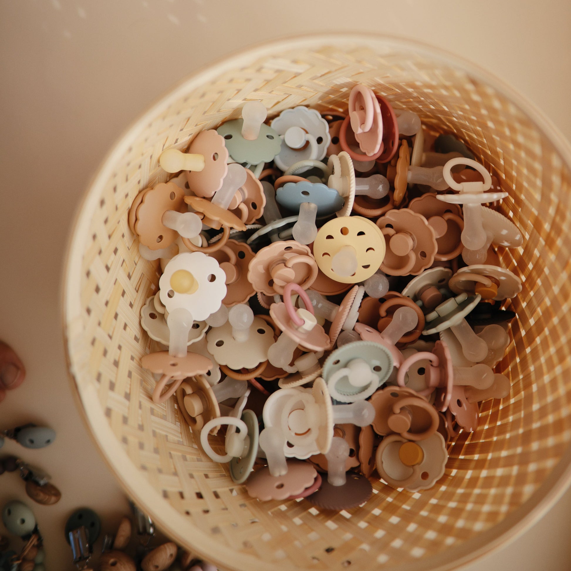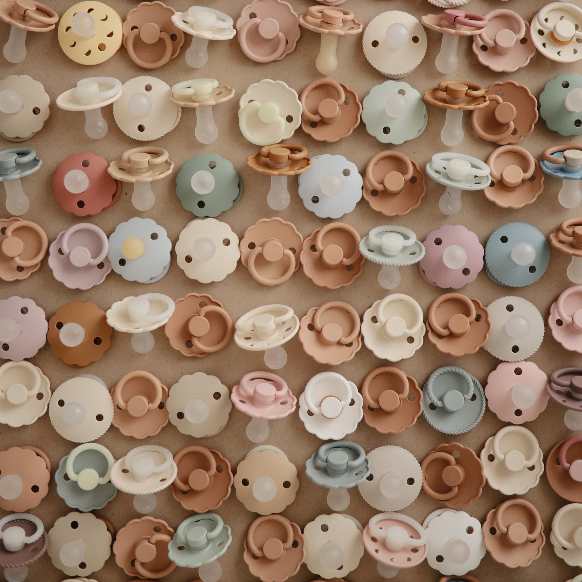 The FRIGG line of daisy silicone pacifiers with improved SilkySoft™ nipple and an innovative Click-lock System has been thoughtfully designed for your baby's comfort. The outward curve keeps the pacifier off their delicate skin, while features like air holes and a security handle ensure your baby stays safe. Available in a range of soft colors, FRIGG pacifiers make a beautiful addition to your collection of baby essentials.