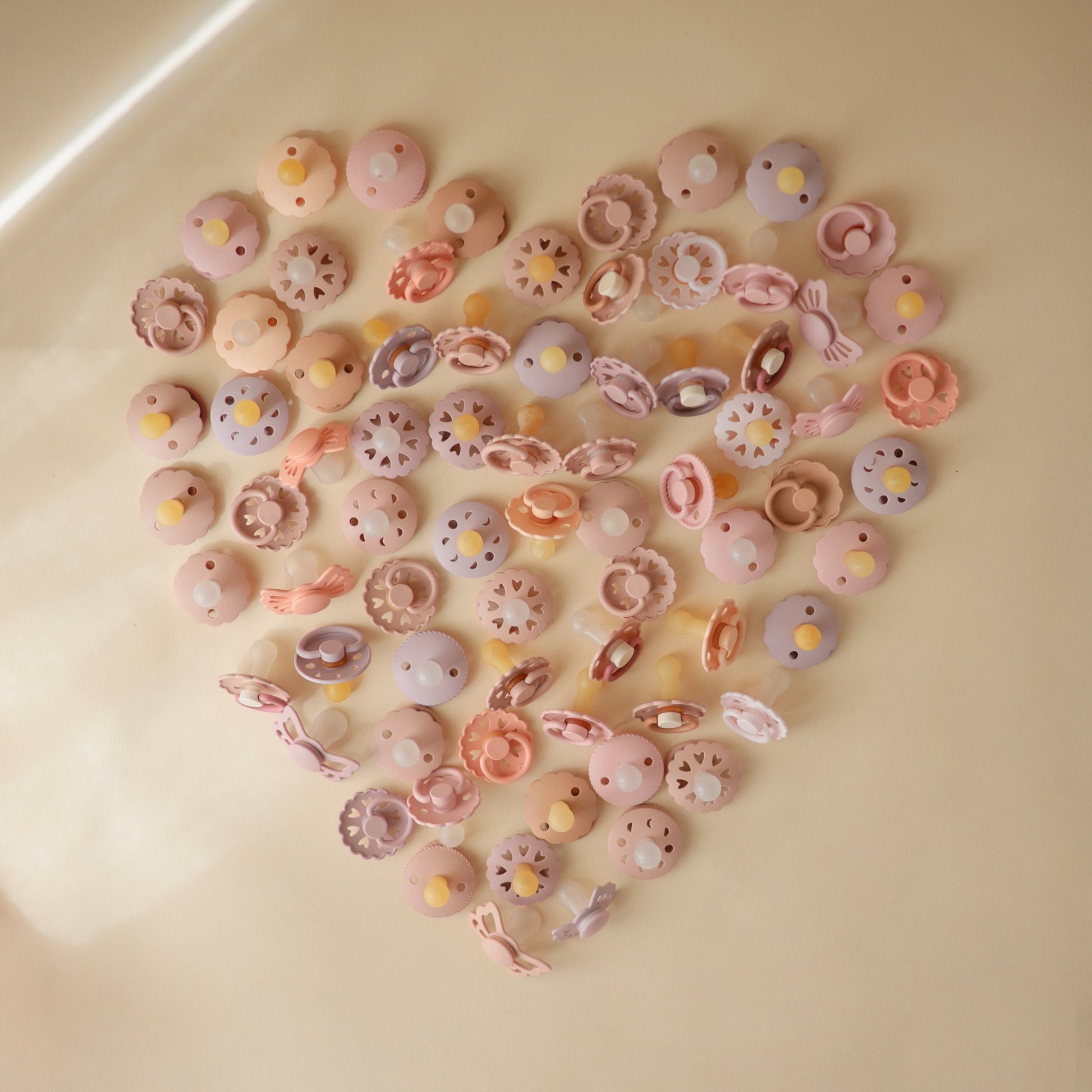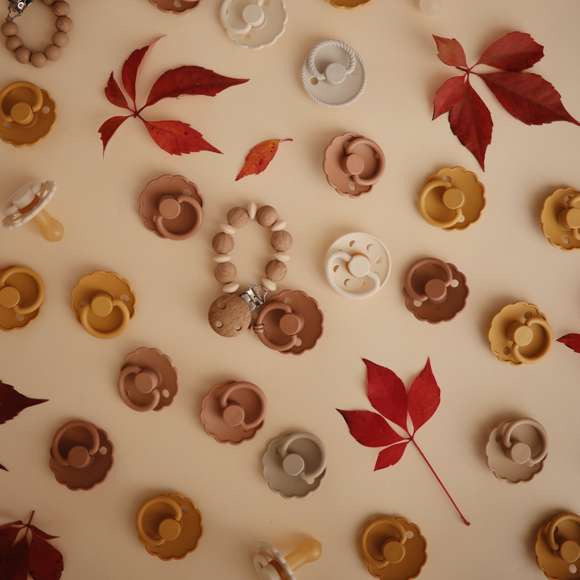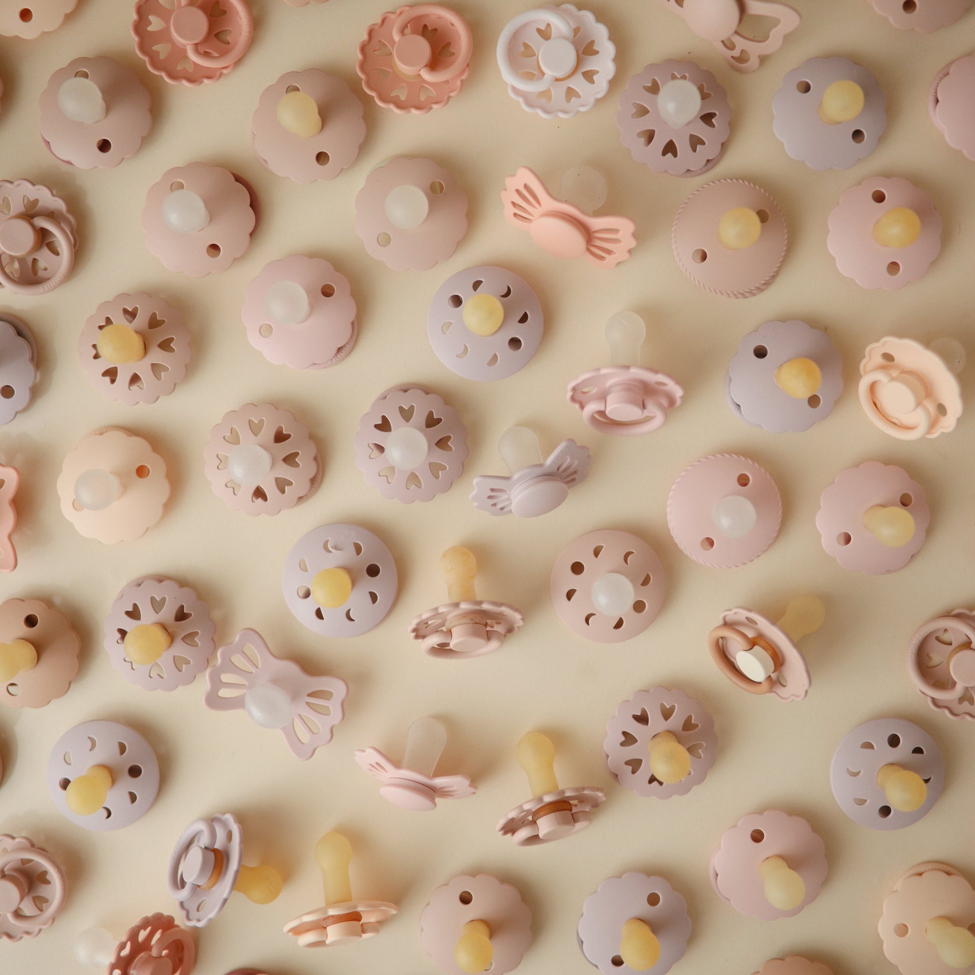The FRIGG line of moon phase rubber pacifiers is thoughtfully designed for your baby's comfort and inspired by the moon in motion. The outward curve keeps the pacifier off delicate skin, while air holes and a security handle ensure your baby stays safe. Within the pacifier shield, air holes reveal the eight phases of the moon in subtle detail. Available in a range of soft colors, FRIGG pacifiers make a beautiful addition to your collection of baby essentials.