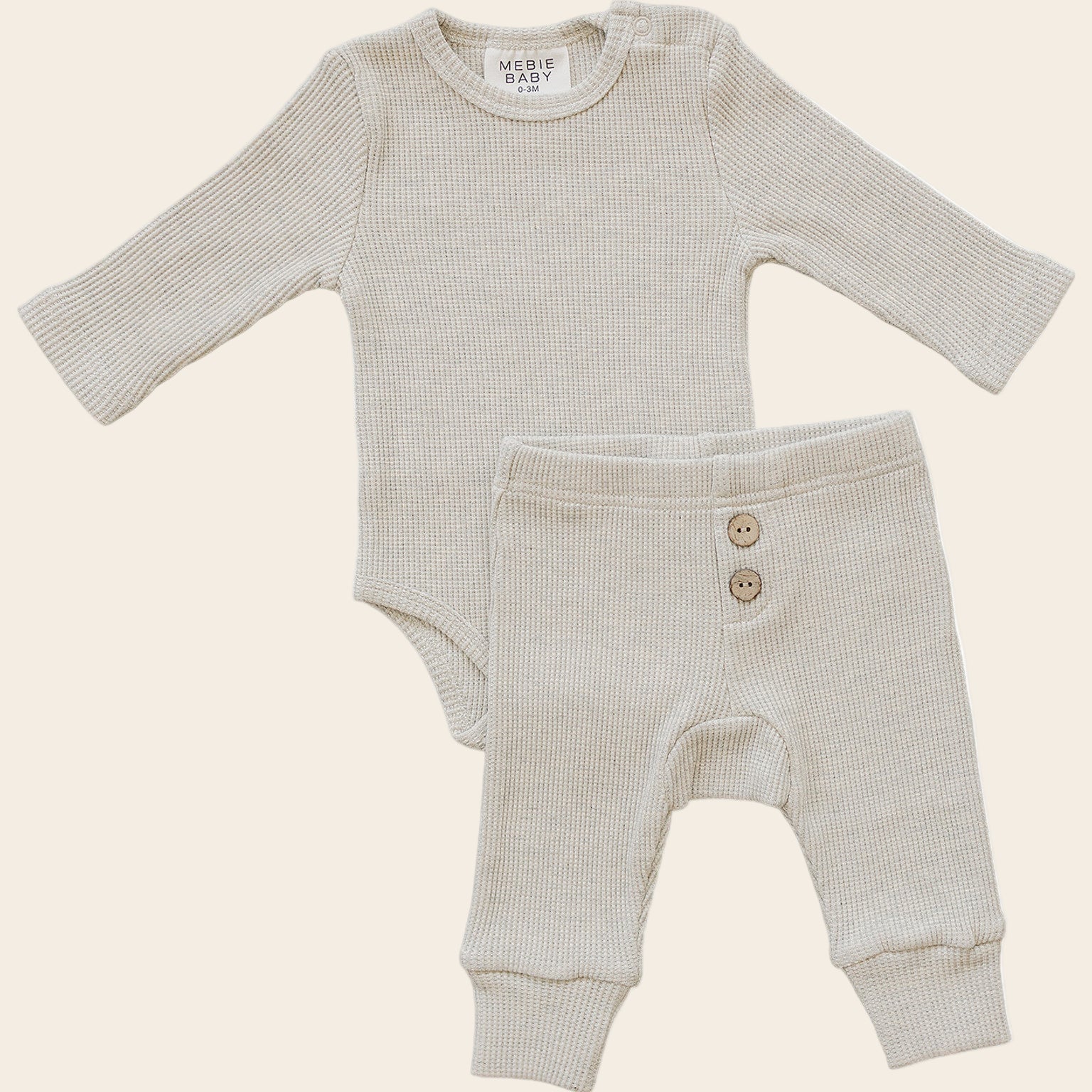 Comfy, cozy, and cute — our Charcoal Bodysuit Waffle Set is an everyday essential. Made from soft waffle-knit fabric, this matching set includes a long sleeve bodysuit and relaxed-fit pants for a cozy, all-day feel. Snaps at the bottom make changes quick and easy, while the stretchy waistband on the pants keeps things comfy for little movers.