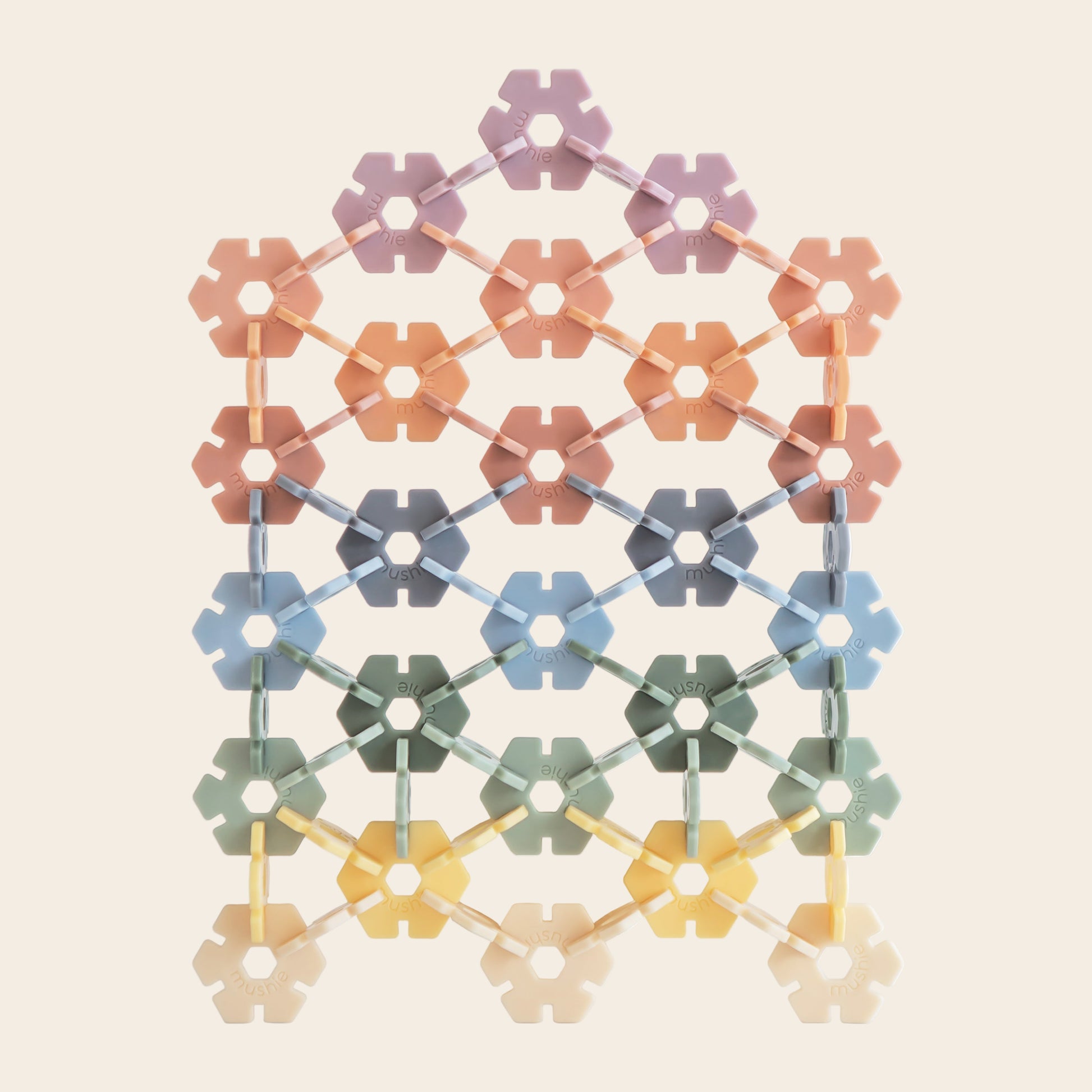 Give littles the tools to learn problem solving skills and develop spatial reasoning with a STEM toy designed to encourage creativity. Our open ended building toy set features 100 hexagon shaped discs that piece together with endless possibilities. Each time littles play, the soft colors blend to create beautiful and unique designs while the BPA-free plastic pieces interlock with ease.