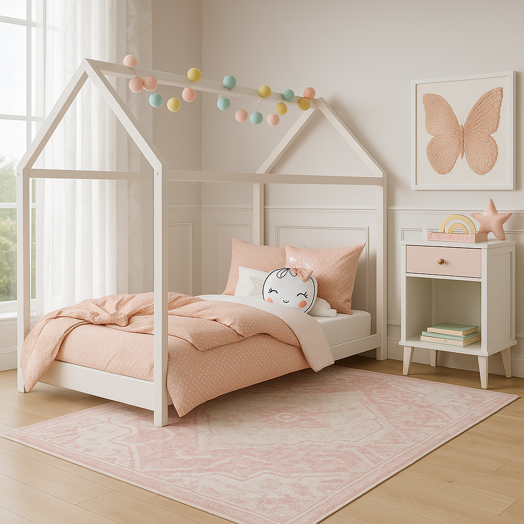 Crafted in Turkey from durable 100% polypropylene, the Leonora rug features a low 0.24” medium pile — perfect for little feet, cozy reading corners, or under cribs and house beds. It’s machine-woven for easy care, making it a beautiful and practical choice for busy family life.
