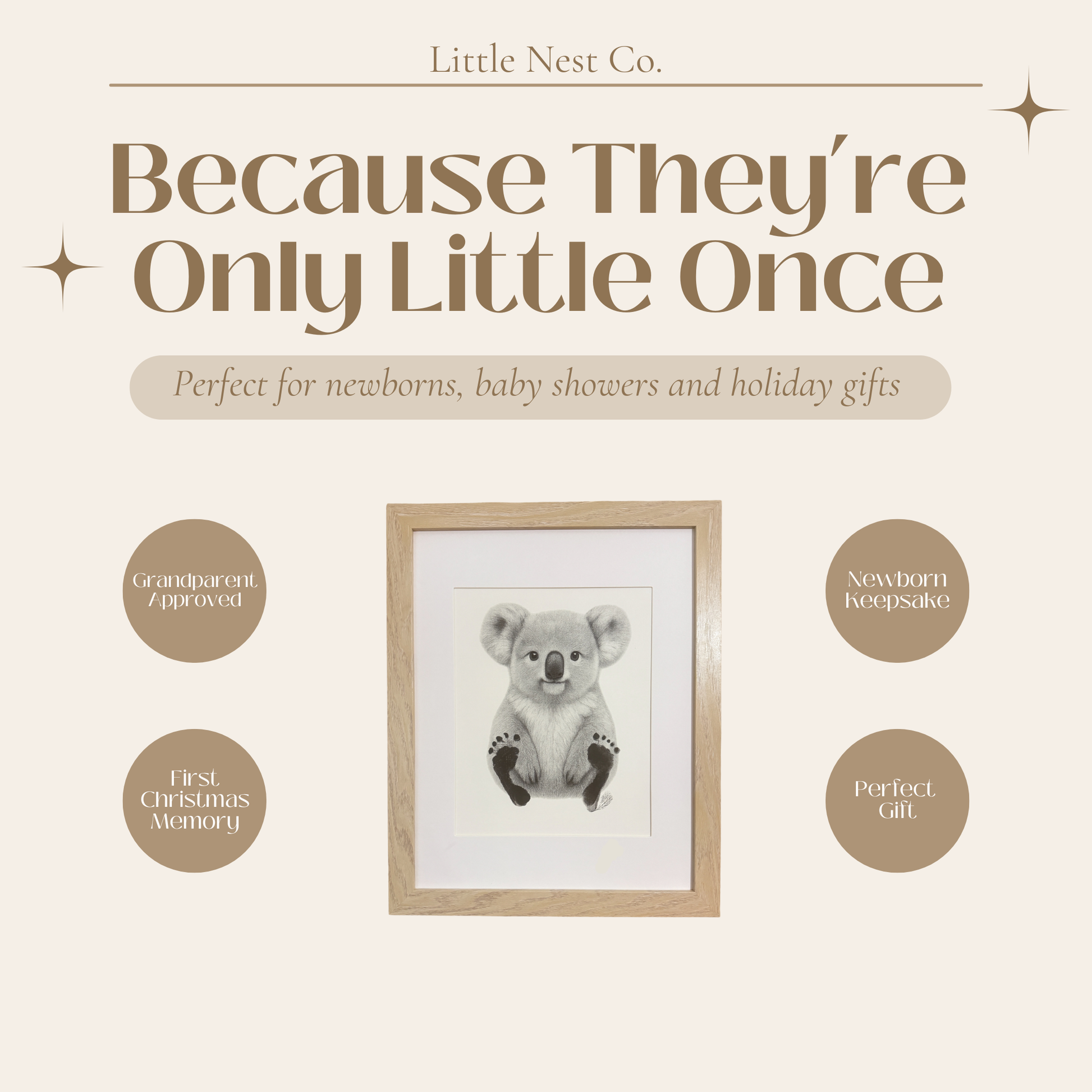 Choose from six adorable animal designs (Koala, Sloth, Penguin, Duck, Bunny, or Panda) and create a keepsake that feels as unique as your little one. Each set includes everything you need to capture baby’s prints with ease — whether you’re gifting it to new parents, marking a first holiday, or preserving those sweet newborn toes before they grow.