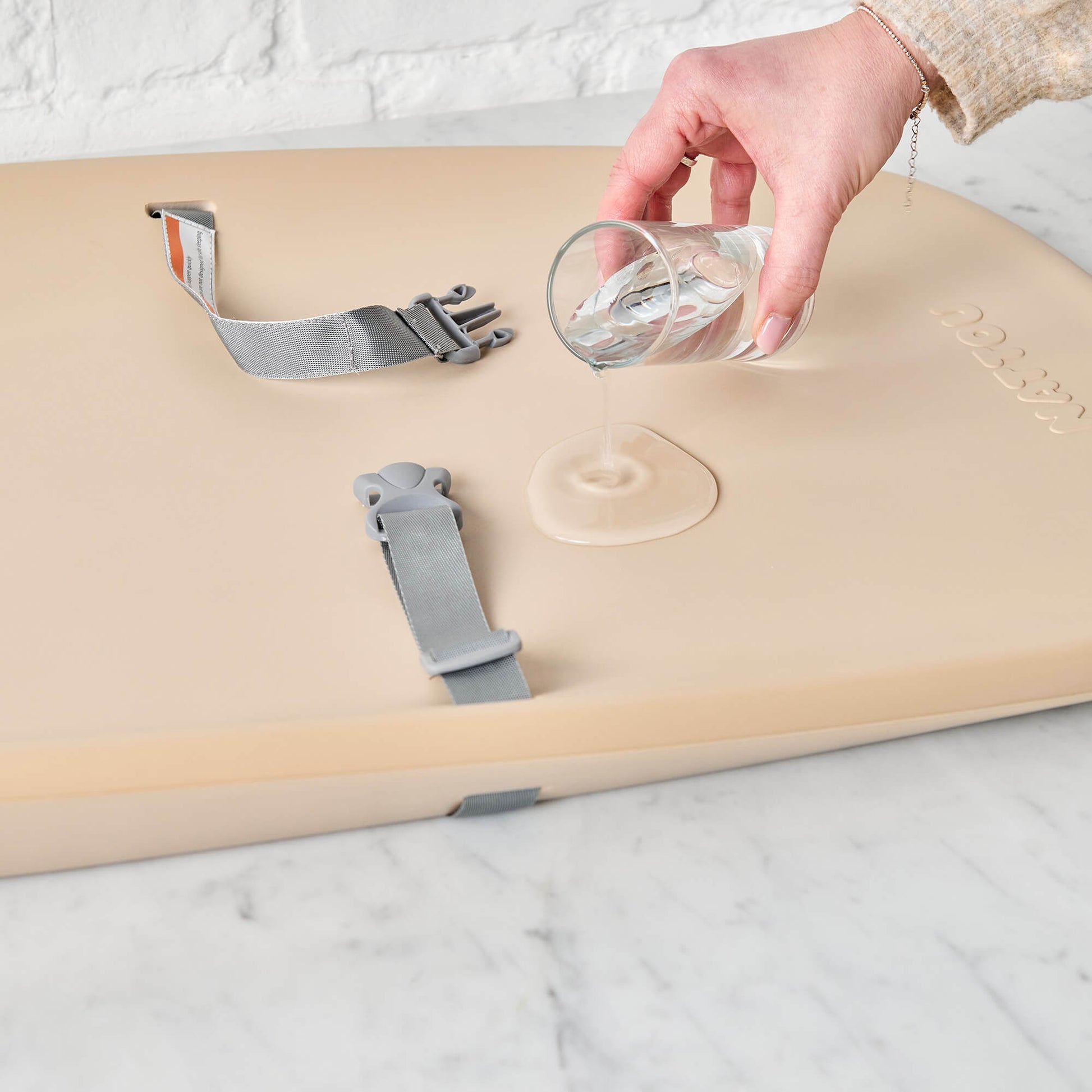 - Safe and easy changing thanks to the raised edges. The ribbed bottom prevents slipping