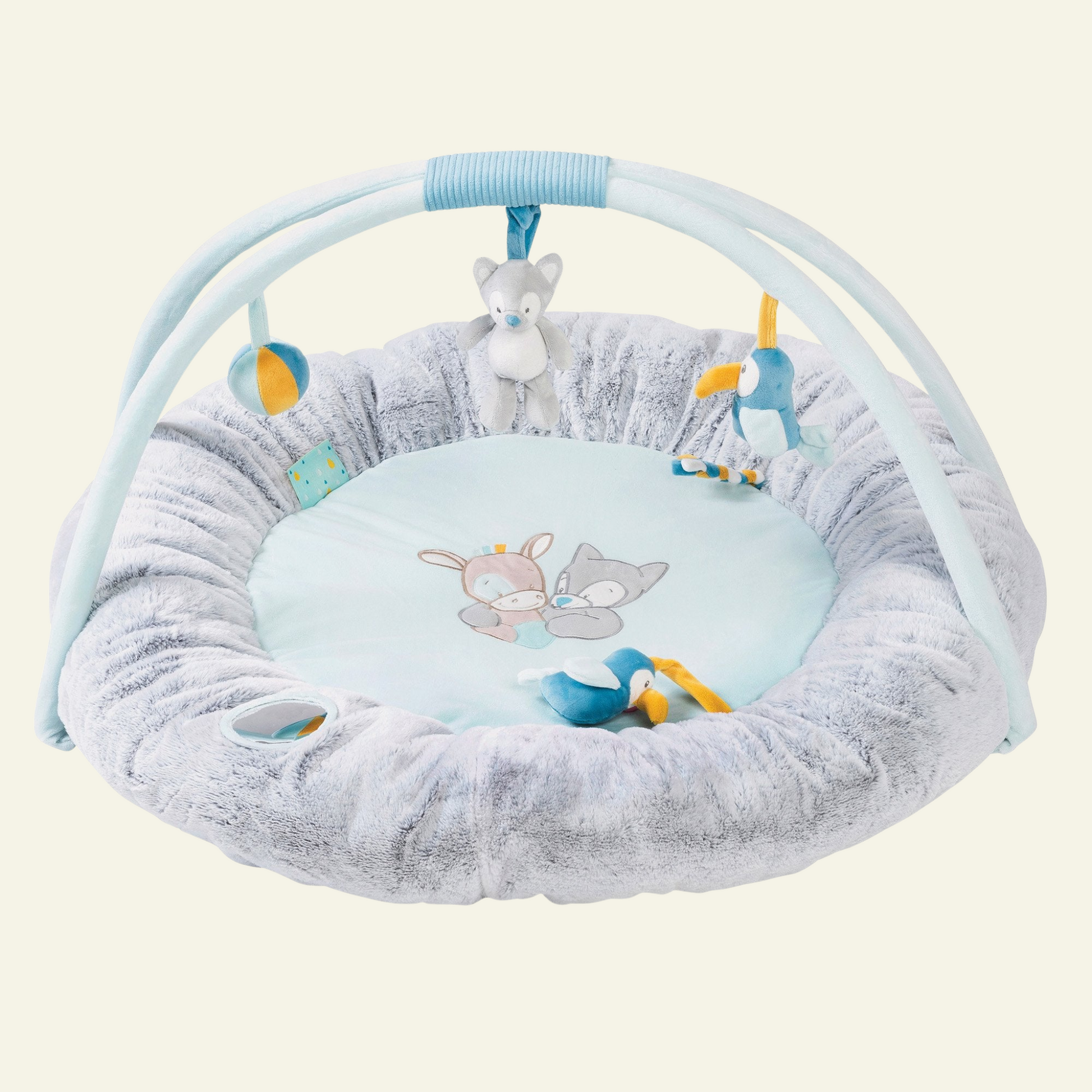This play mat is particularly soft and cuddly- so that your children feel comfortable when playing. The 25 components stimulate curiosity and the spirit of discovery. The little ones can hear- feel- crawl and grasp to the full in their little play world.