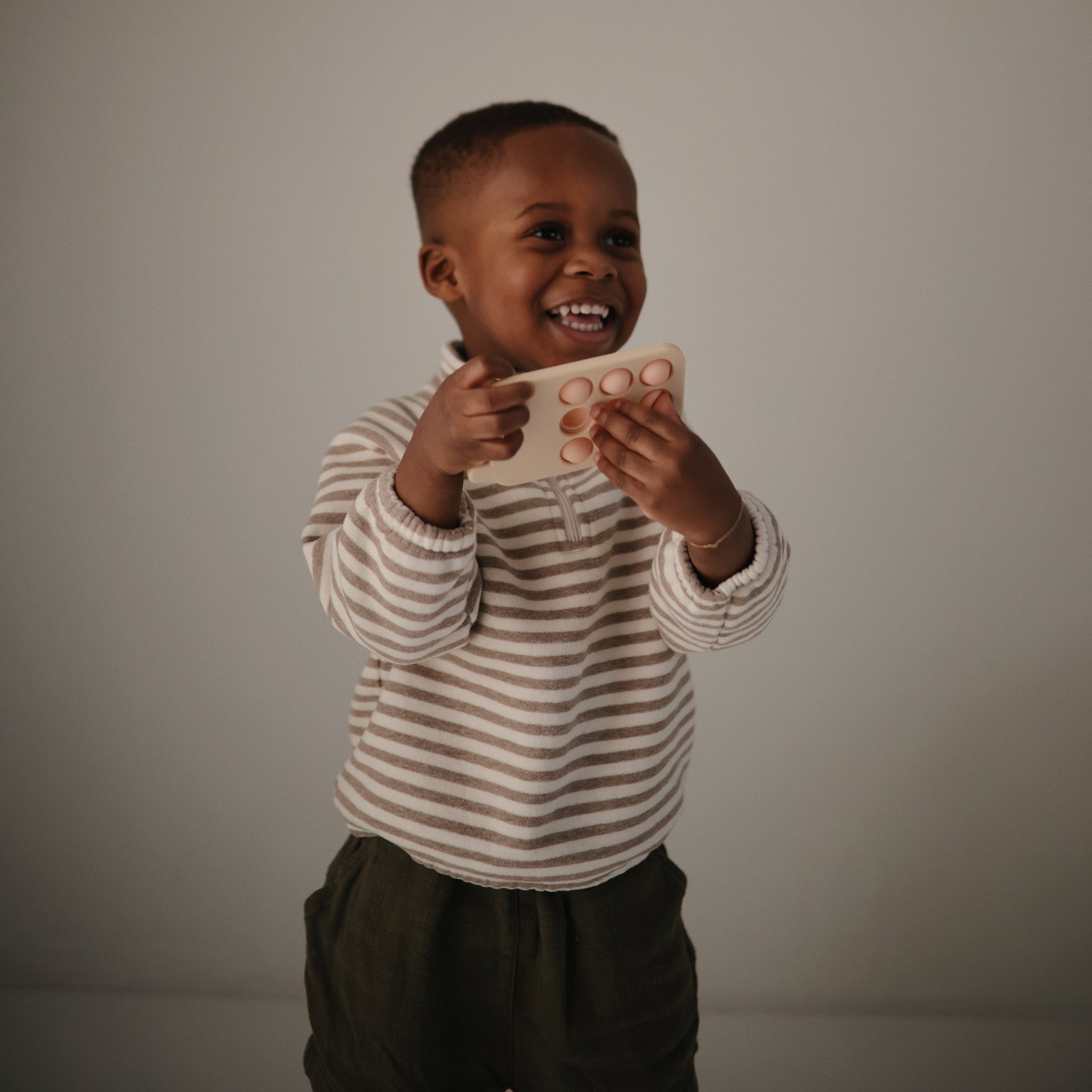 Made with little hands in mind, our phone press toy encourages sensory exploration and the development of fine motor skills with its simple design and soft colors. Featuring food grade silicone and a BPA-free plastic frame, children will tap into learning as they press the bubbles and hear a gentle pop.
