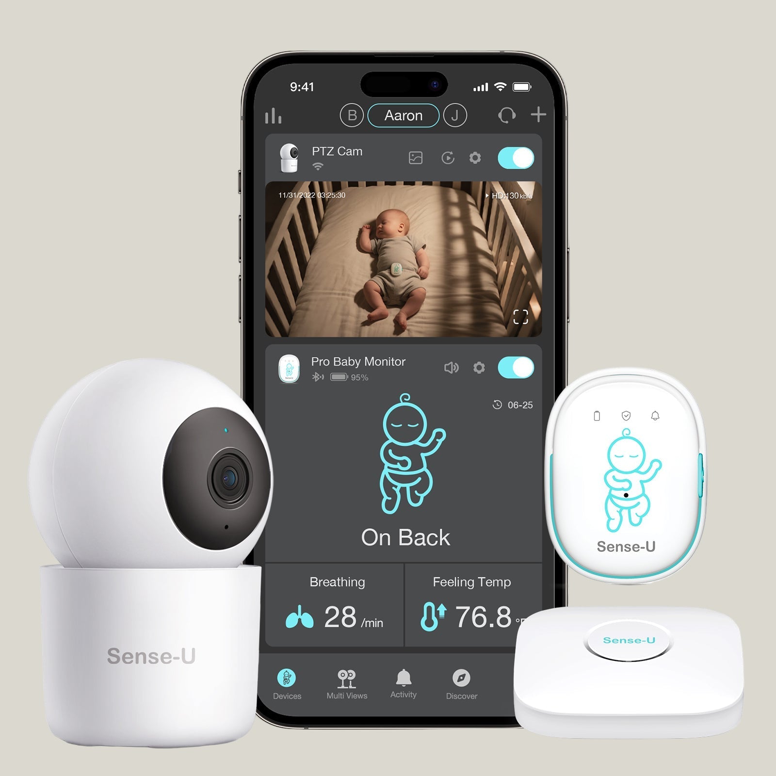 From anywhere, the Sense-U Pro baby monitor(Long Range) with 2.5K PTZ camera detects the cause of potential sleep discomfort—such as slow breathing, stomach sleeping, or overheating—rather than only the effect like lower heart rate, giving you faster alerts for potential sleep-related issues than heart rate monitors. Peace of mind comes from fast on-device arousal vibration, audible alarms, app notifications, and in-depth sleep analysis—helping ensure your baby’s comfort, better sleep, and your reassurance.