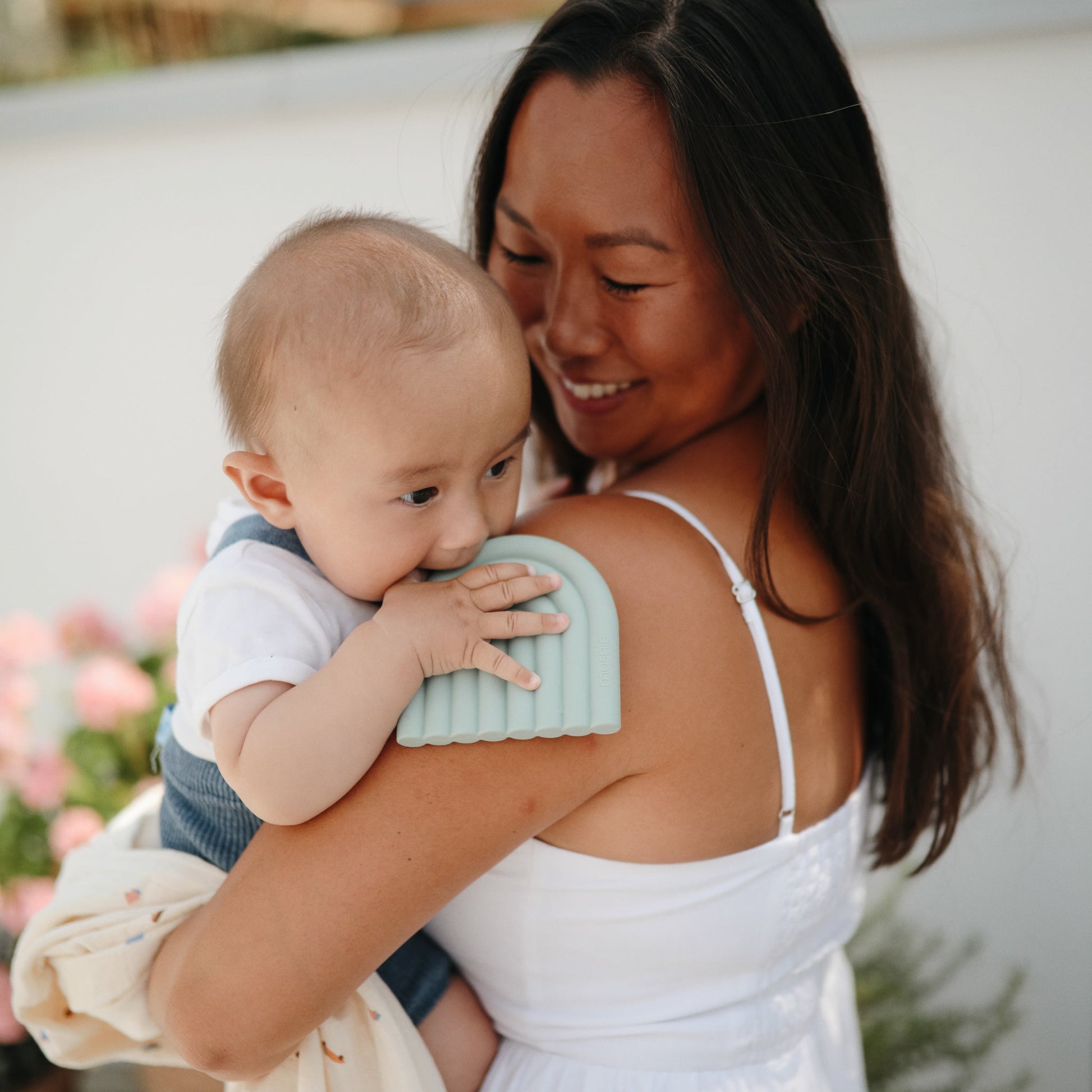 Help soothe your baby's irritated gums with our line of rainbow teethers. Made from 100% non-toxic, food-grade silicone, they're safe for your baby to use—and their whimsical design and sophisticated colors make them a stylish addition to your home.