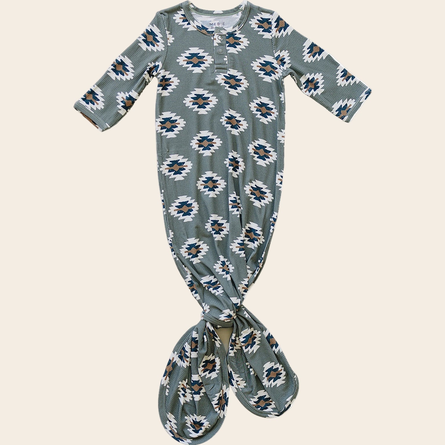 These gowns are size 0-3. They are made out of supremely soft Bamboo Rayon to keep your little one comfortable. We have a variety of gender neutral designs and colors making them perfect for any baby. They have fold over hands and two snaps for easy on and off. We also have shoulder flaps to make it easily pull over your little ones head, we want to make dressing your baby as easy as possible. The bottom is easily tied and untied in a knot for no-fuss diaper changes which makes it a newborn baby essential! These are made out of the same fabric as our stretch swaddles and match the colors of the stretch swaddles, head wraps, and hats.