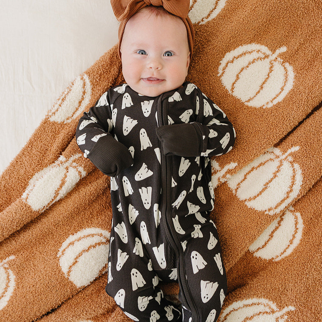 Introduce your little one to the cozy and stylish world of the Spooky Bamboo Zipper by Mebie Baby. Designed for babies aged 0-3 to 18 months, this adorable sleeper features a fun Halloween pumpkin print that adds a touch of festive charm to your baby’s wardrobe. Crafted from ultra-soft, breathable bamboo fabric, this zipper onesie ensures your baby stays comfortable throughout the day and night. The convenient double zipper allows for quick and easy diaper changes, while the handcuffs on the hands and feet extend its usability as your child grows. Additionally, the foot grips provide extra stability for little ones who are just starting to move around. Whether it’s for a nap or playtime, the Spooky Bamboo Zipper is the perfect blend of comfort, convenience, and cuteness. Add this seasonal essential to your baby’s collection and enjoy the peace of mind that comes with quality and style.
