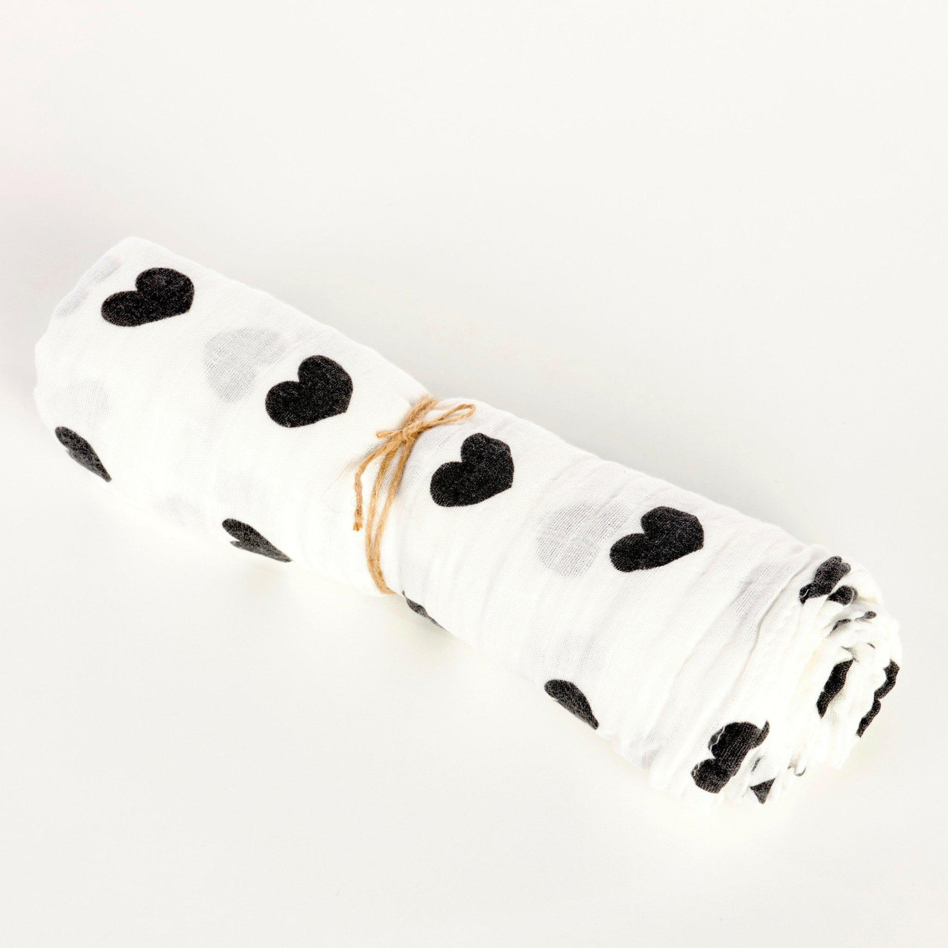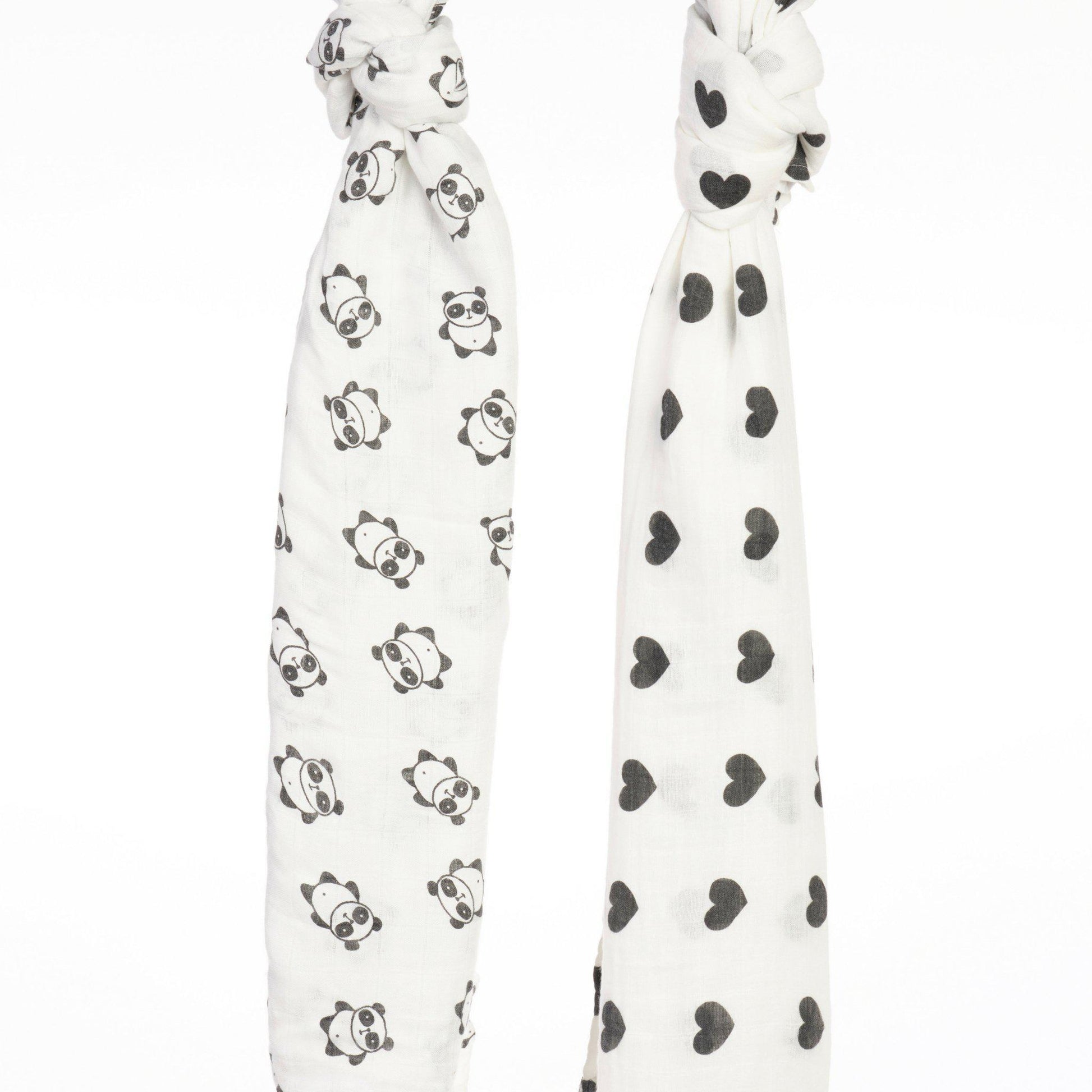 A two pack of soft Bamboo Swaddles—in heart & panda patterns!