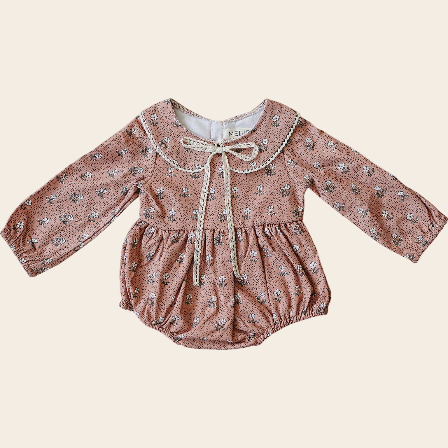 Delicate, timeless, and full of charm our Vintage Pink Floral Bubble Romper is a beautiful heirloom-style piece designed for special moments and everyday sweetness. Made from soft, breathable cotton with a vintage-inspired pink floral print, this romper features a gently gathered bubble silhouette for all-day comfort and easy movement.