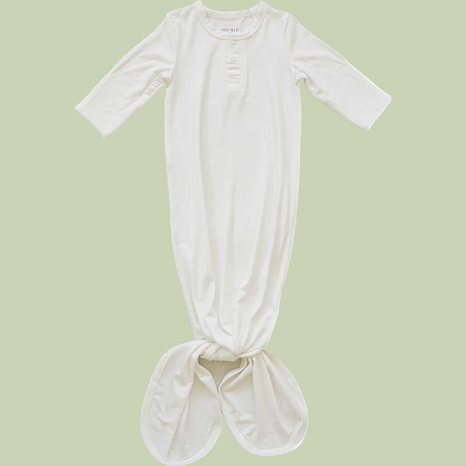 These gowns are size 0-3. They are made out of supremely soft Bamboo Rayon to keep your little one comfortable. We have a variety of gender neutral designs and colors making them perfect for any baby. They have fold over hands and two snaps for easy on and off. We also have shoulder flaps to make it easily pull over your little ones head, we want to make dressing your baby as easy as possible. The bottom is easily tied and untied in a knot for no-fuss diaper changes which makes it a newborn baby essential! These are made out of the same fabric as our stretch swaddles and match the colors of the stretch swaddles, head wraps, and hats.
